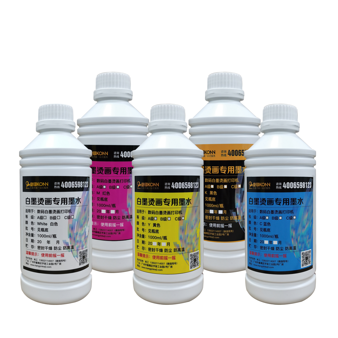 白墨燙畫墨水特點(diǎn): 彩色墨水:歐標(biāo)環(huán)保 色彩鮮艷 色牢度高 白色墨水:流暢不堵頭 白度不透底 高彈不泛油